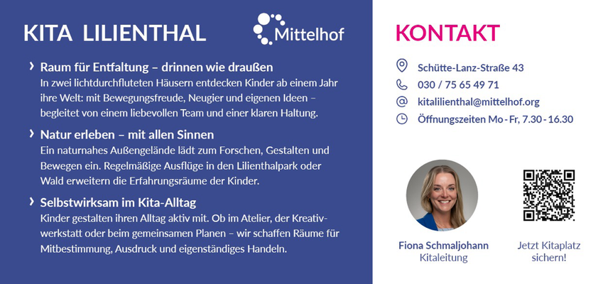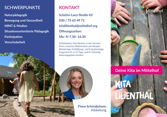 Seit zwei Jahren arbeite ich für einen gemeinnützigen Verein, der im Südwesten Berlins seit fast 80 Jahren engagiert ist. Zum Mittelhof e.V. gehören Kindertagesstätten, Jugendfreizeiteinrichtungen, Familienzentren und verschiedene Beratungsstellen. Ich hatte das Glück mit dem Relaunch der Webseite in 2023 einzusteigen und so die gesamte Organisation kennenzulernen. Es gefällt mir, dass die Aufgaben aufgrund der Größe des Trägers sehr abwechslungsreich sind. Im Laufe der Zeit habe ich viele verschiedene Projekte begleitet, von der Vermarktung der Angebote über die Begleitung von Veranstaltungen bis hin zu Kampagnen für die Organisation. Zu meinem Bereich gehört es auch, die Webseite und die Social Media Kanäle zu betreuen sowie die unterschiedlichen Teams mit Merchandise-Produkten zu versorgen.